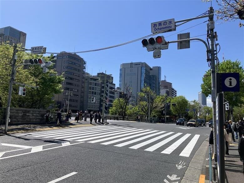 地上に出て、御茶ノ水交差点の左方向にある橋をお渡りください。