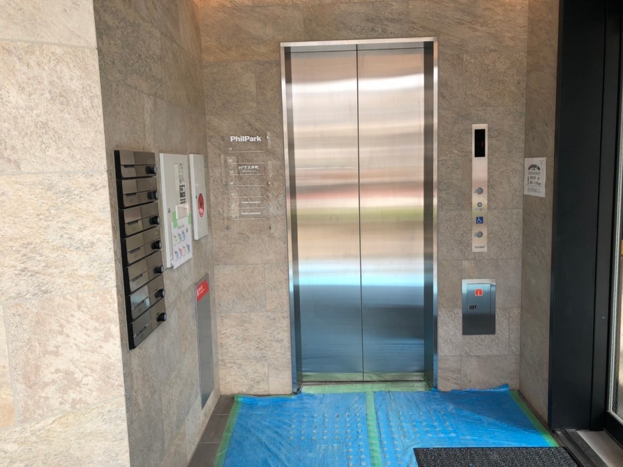 少し進んだ先のトリキバーガーの手前左手にエレベーターがございます。